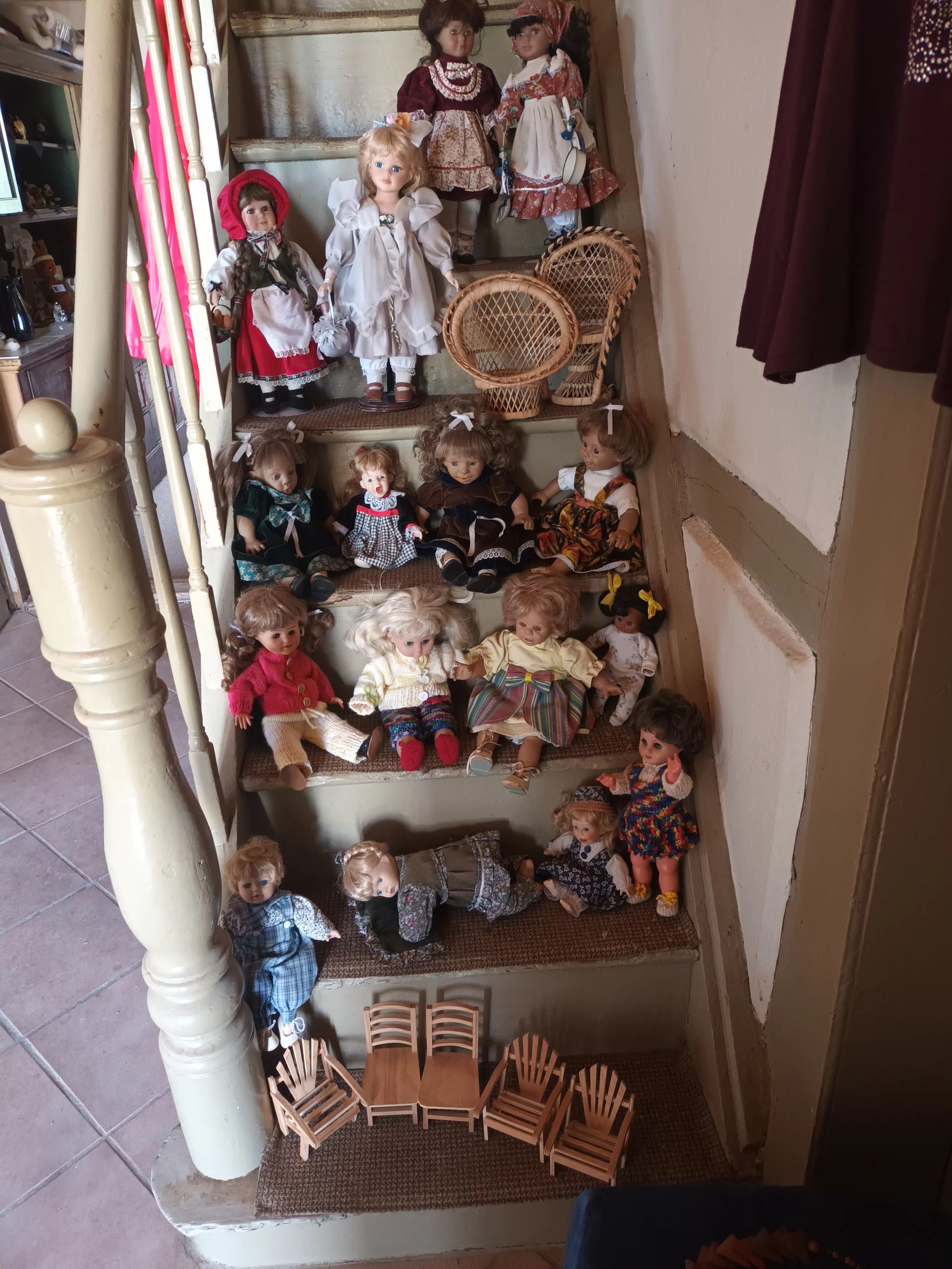Geboren wurde die Idee, nachdem wir eine große Menge kaum getragener Damenbekleidung gespendet bekommen haben. An einigen Artikeln ist noch das Originaletikett. Dann bekamen wir noch viele Puppen, aus einer Sammlerauflösung. Weiter ging es mit einigen Amiguris (gehäkelte Tiere und Figuren), Glas und Porzellan, Dekofiguren, Tischwäsche, Bilder, Bücher, Tier- und Kochzeitschriften, Lichterketten, CD´s und DVD´s...